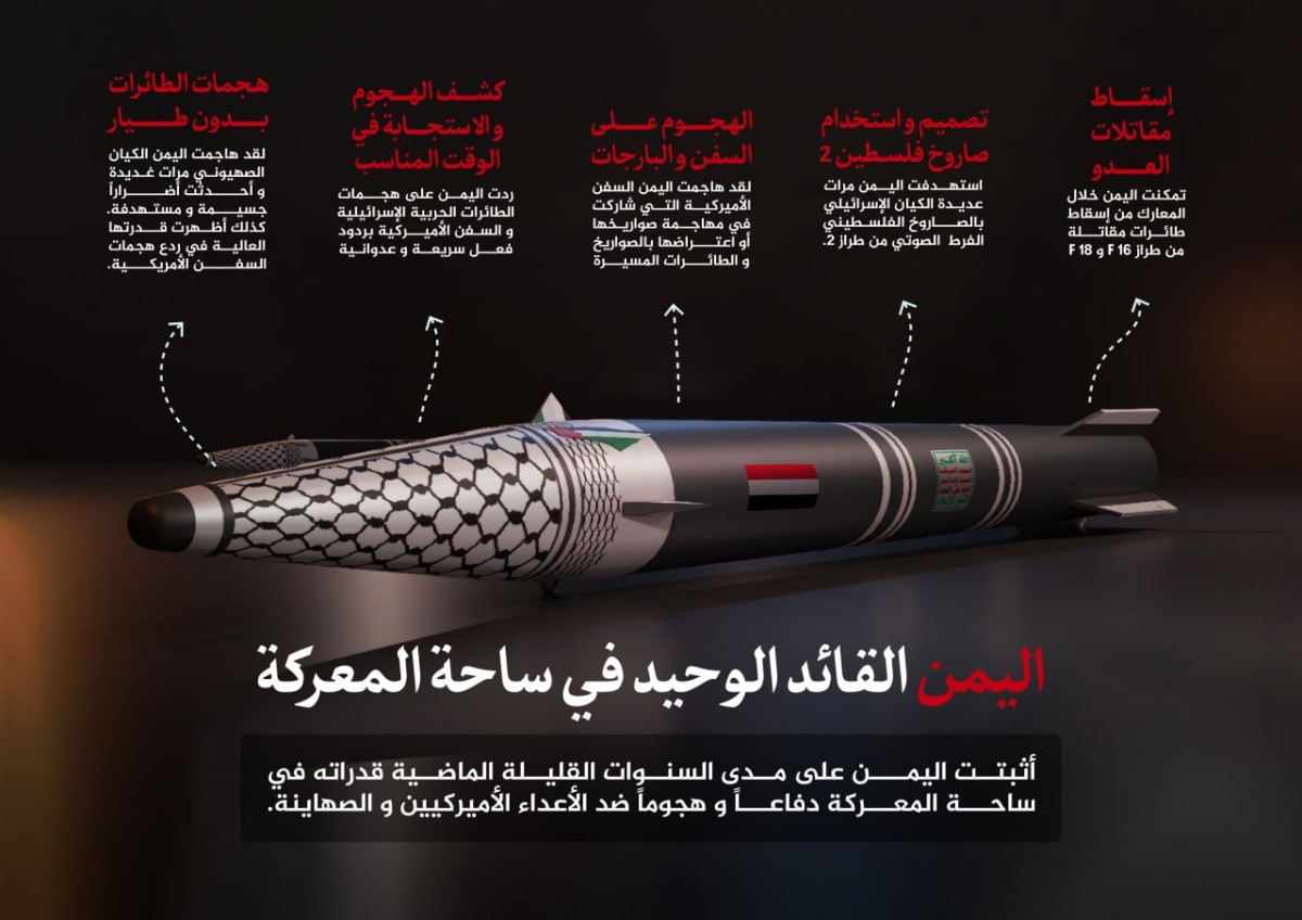 أثبتت اليمن على مدى السنوات القلية الماضية قدراته في ساحة المعركة دفاعا وهجوما ضد الأعداء الامريكيين والصهاينة.