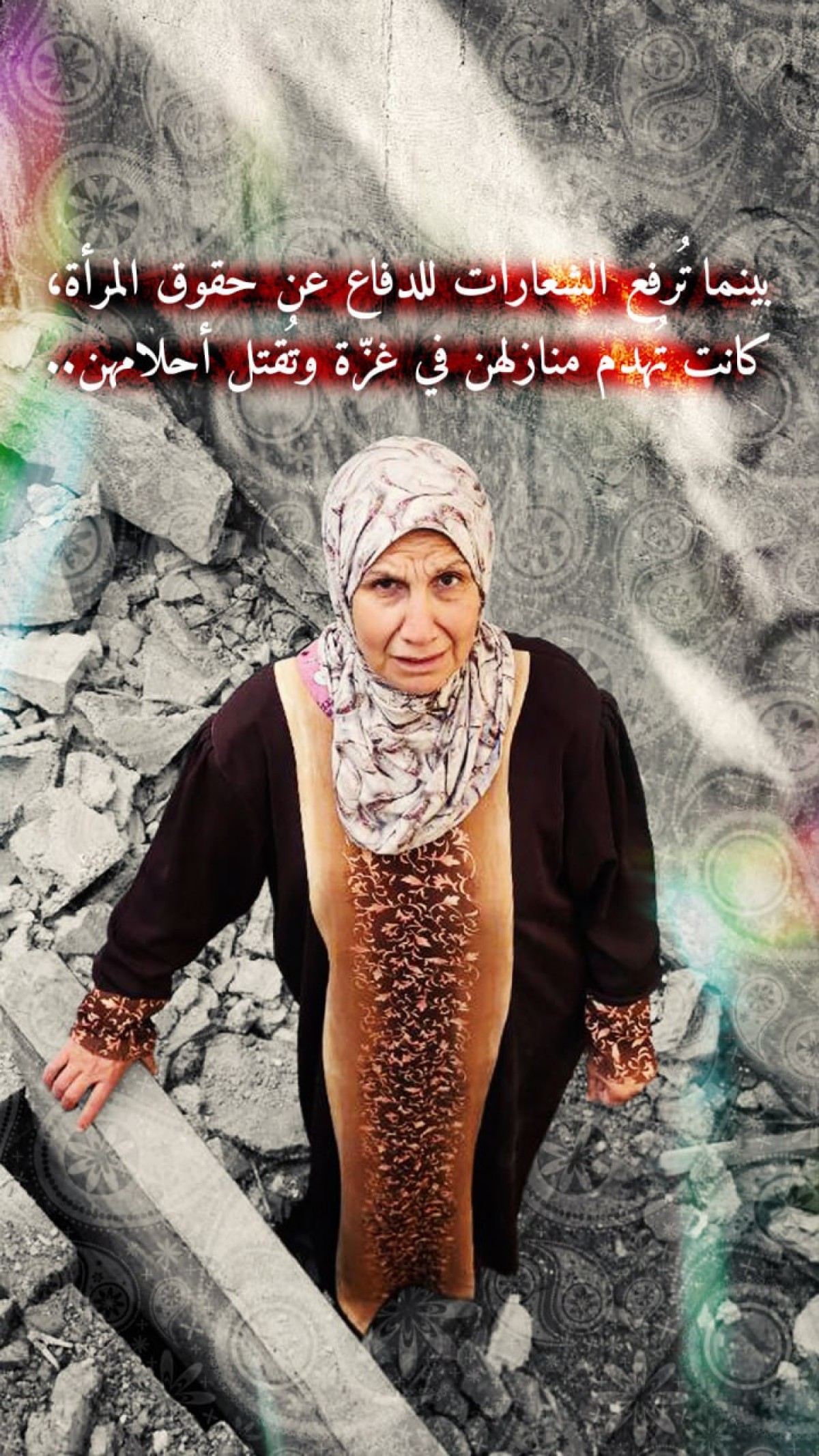 -بينما ترفع الشعارات للدفاع عن حقوق المرأة، كانت تهدم منازلهن في غزة وتقتل أحلامهن ..