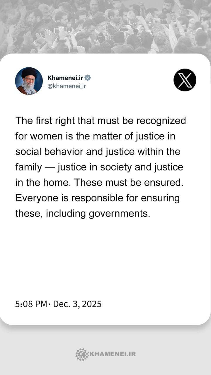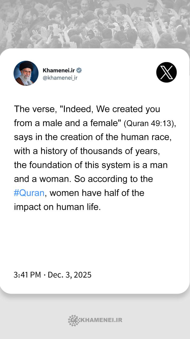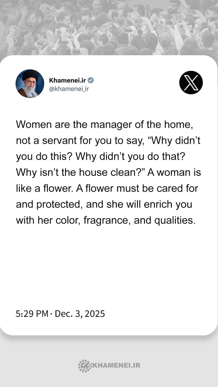 From Imam Khamenei's speech in a meeting with thousands of women from across the country, Dec. 3, 2025
