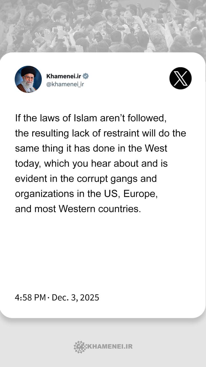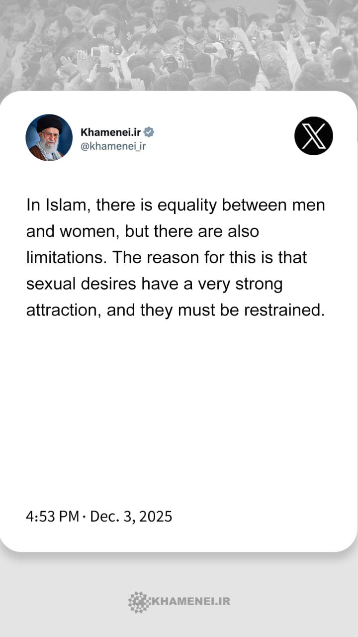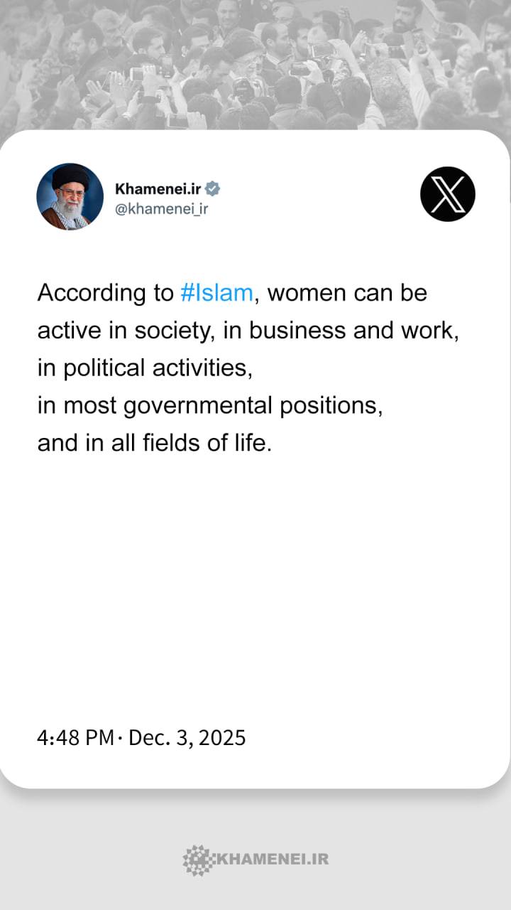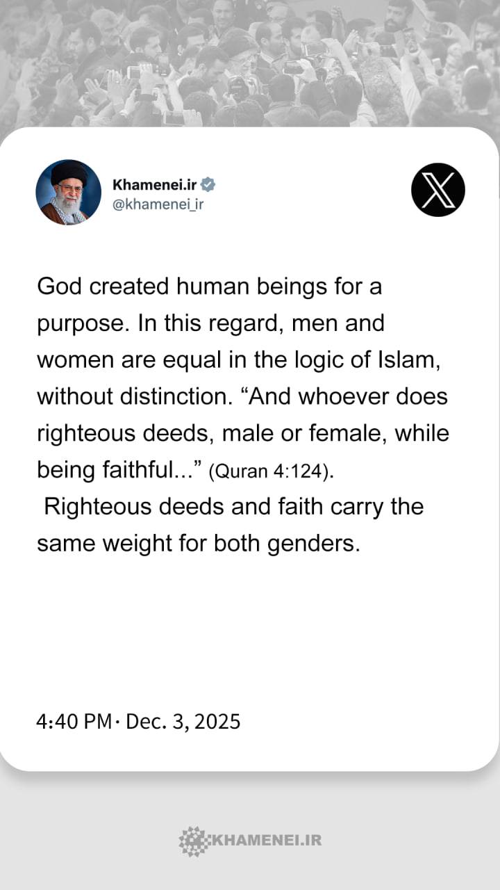 From Imam Khamenei's speech in a meeting with thousands of women from across the country, Dec. 3, 2025