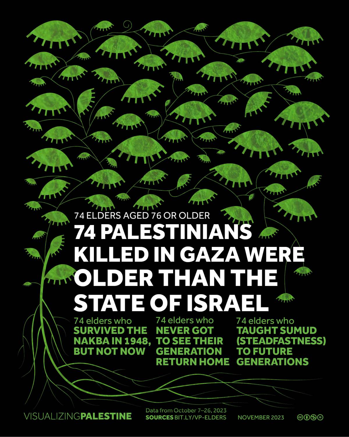 After U.S. President Biden further dehumanized Palestinians by questioning the death toll in Gaza, the Gaza Ministry of Health released the names, ages, and ID numbers of 6,747 people killed in Gaza. Among them were 74 Palestinians between the ages of 76 and 93.