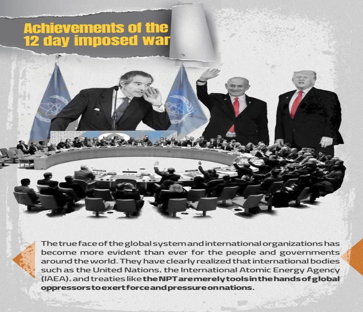 The true face of the global system and international organizations has become more evident than ever for the people and governments around the world. They have clearly realized that international bodies such as the United Nations, the lntrrnational Atomic Energy Agency (AEA), and treaties like the NPT are merely tools in the hands of global oppressors to exert force and pressure onnations.