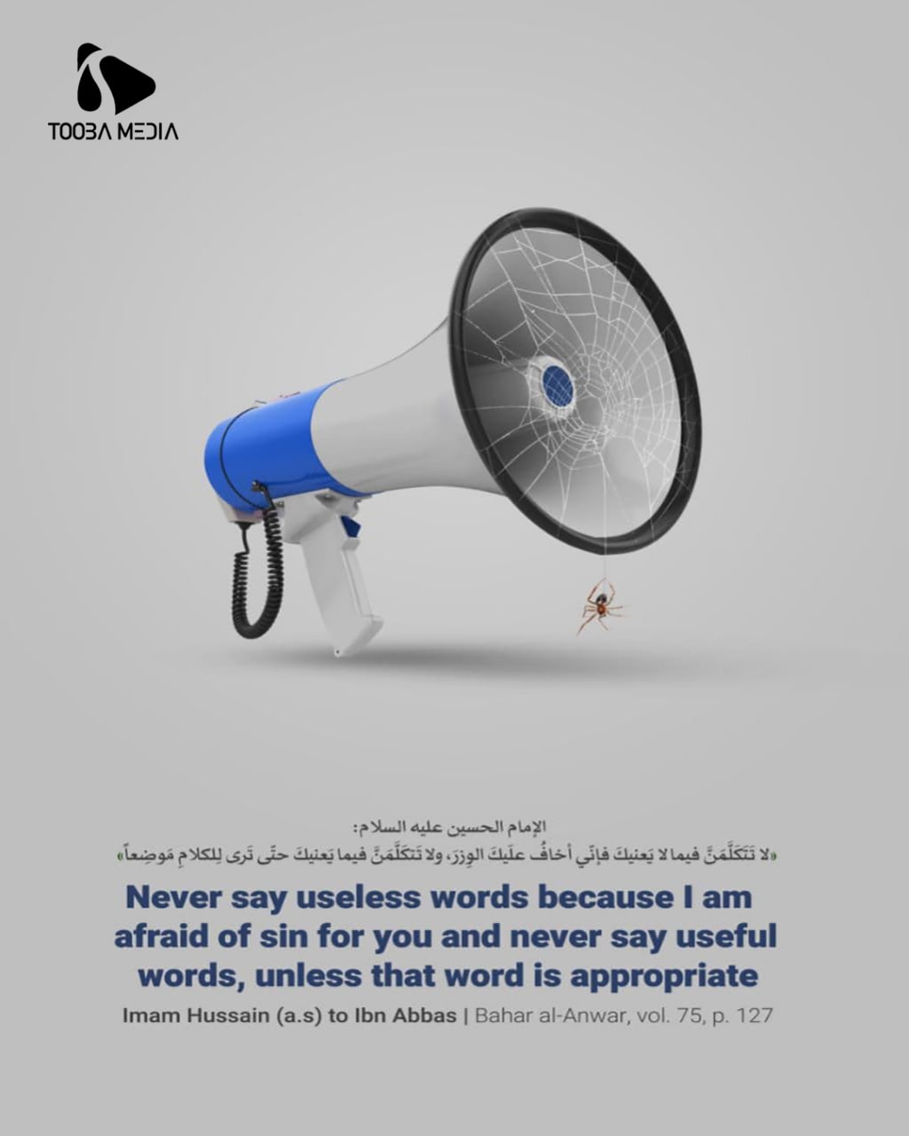 Imam Hossein (a.s) Said:Never say useless words because i am afraid of sin for you and never say useful words, unless that word is appropriate.