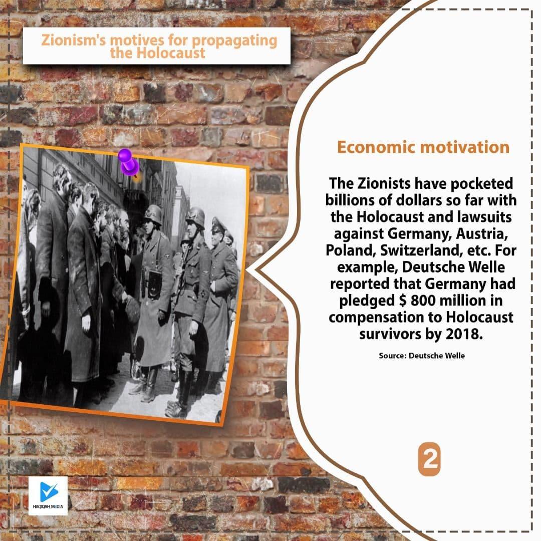 The Zionists have pocketed billions of dollars so far with the Holocaust and lawsuits against Germany, Austria, Poland, Switzerland, etc. For example, Deutsche Welle reported that Germany had pledged $ 800 million in compensation to Holocaust survivors by 2018.