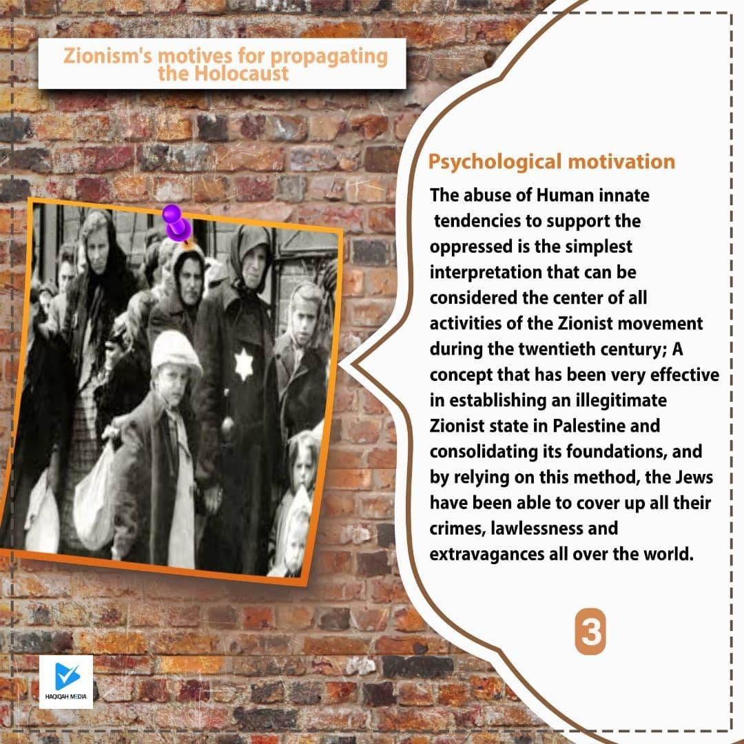 The abuse of Human innate tendencies to support the oppressed is the simplest interpretation that can be considered the center of all activities of the Zionist movement during the twentieth century; A concept that has been very effective in establishing an illegitimate Zionist state in Palestine and consolidating its foundations, and by relying on this method, the Jews have been able to cover up all their crimes, lawlessness and extravagances all over the world.
