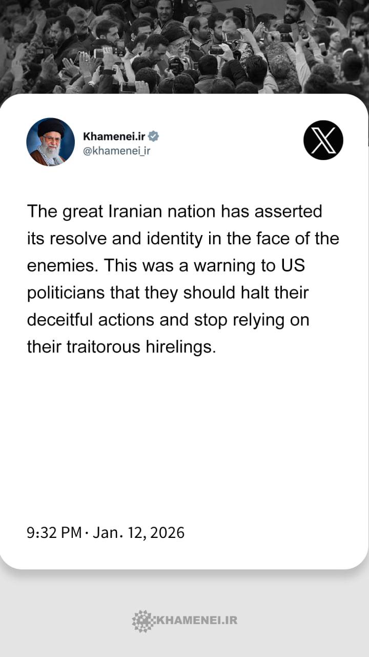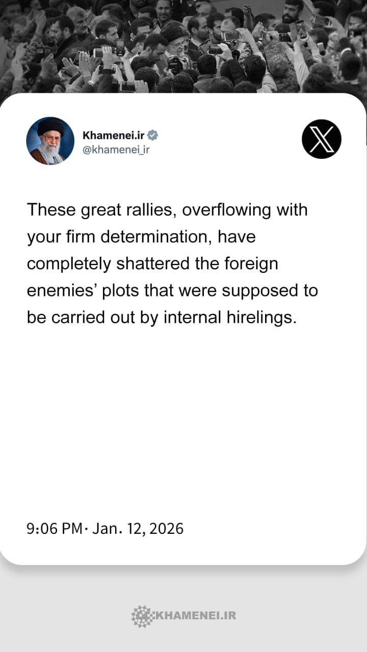 From Imam Khamenei’s message to the Iranian nation following the people’s tremendous participation in rallies on January 12, 2026