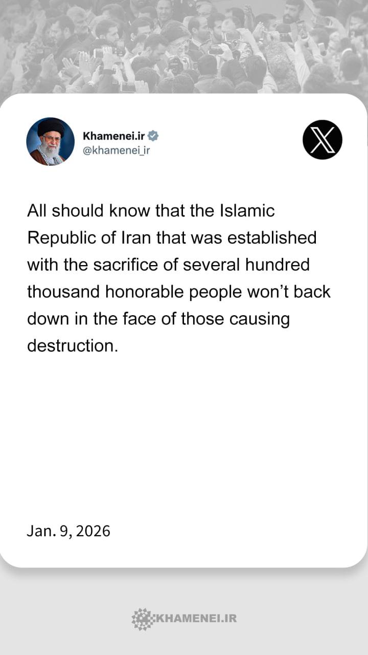 From Imam Khamenei's speech on Jan. 9, 2026