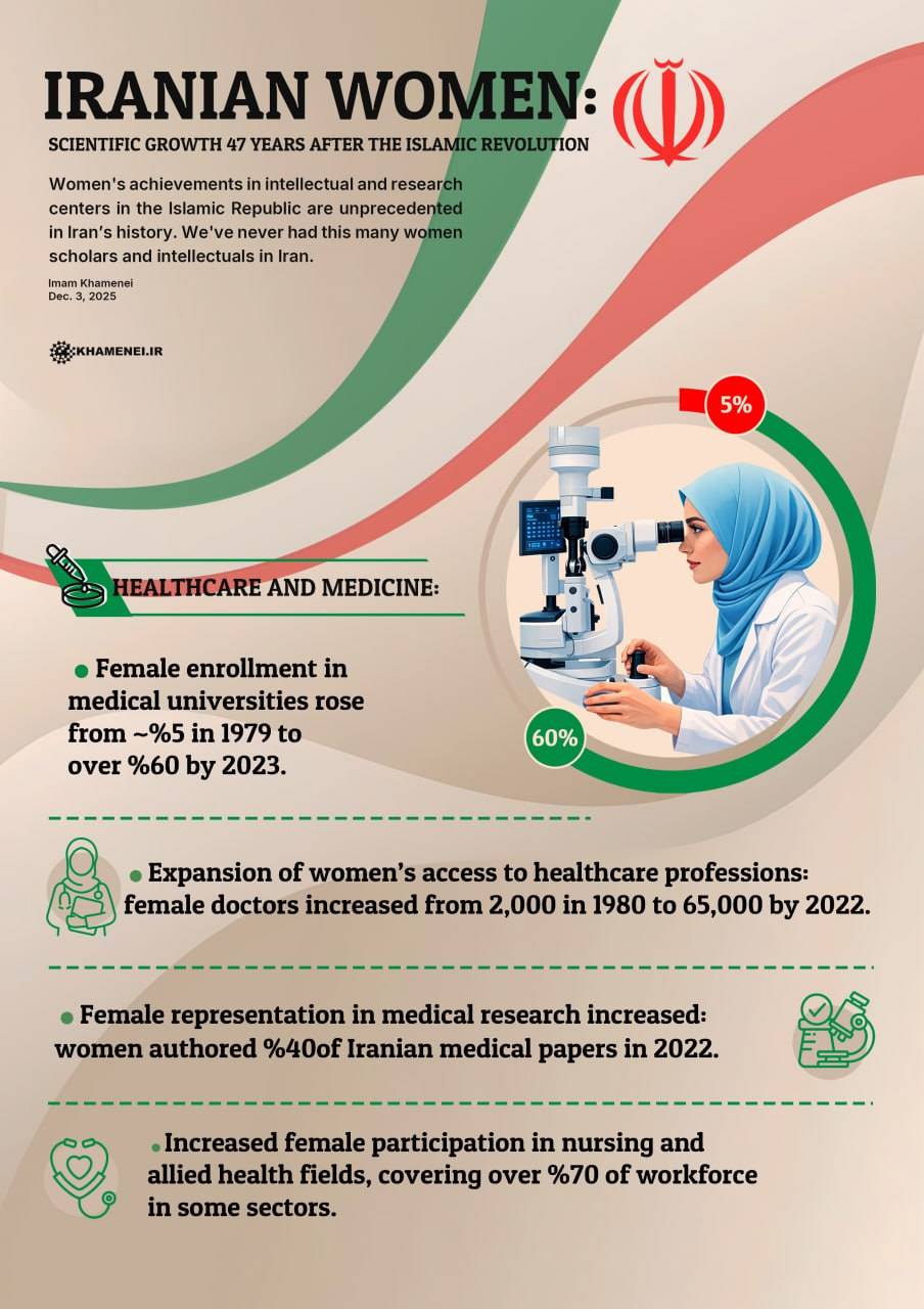 Women's achievements in intellectual and research centers in the Islamic Republic are unprecedented in Iran’s history. We've never had this many women scholars and intellectuals in Iran. Praise God, our women are among the best in global science, social, political and athletic fields.