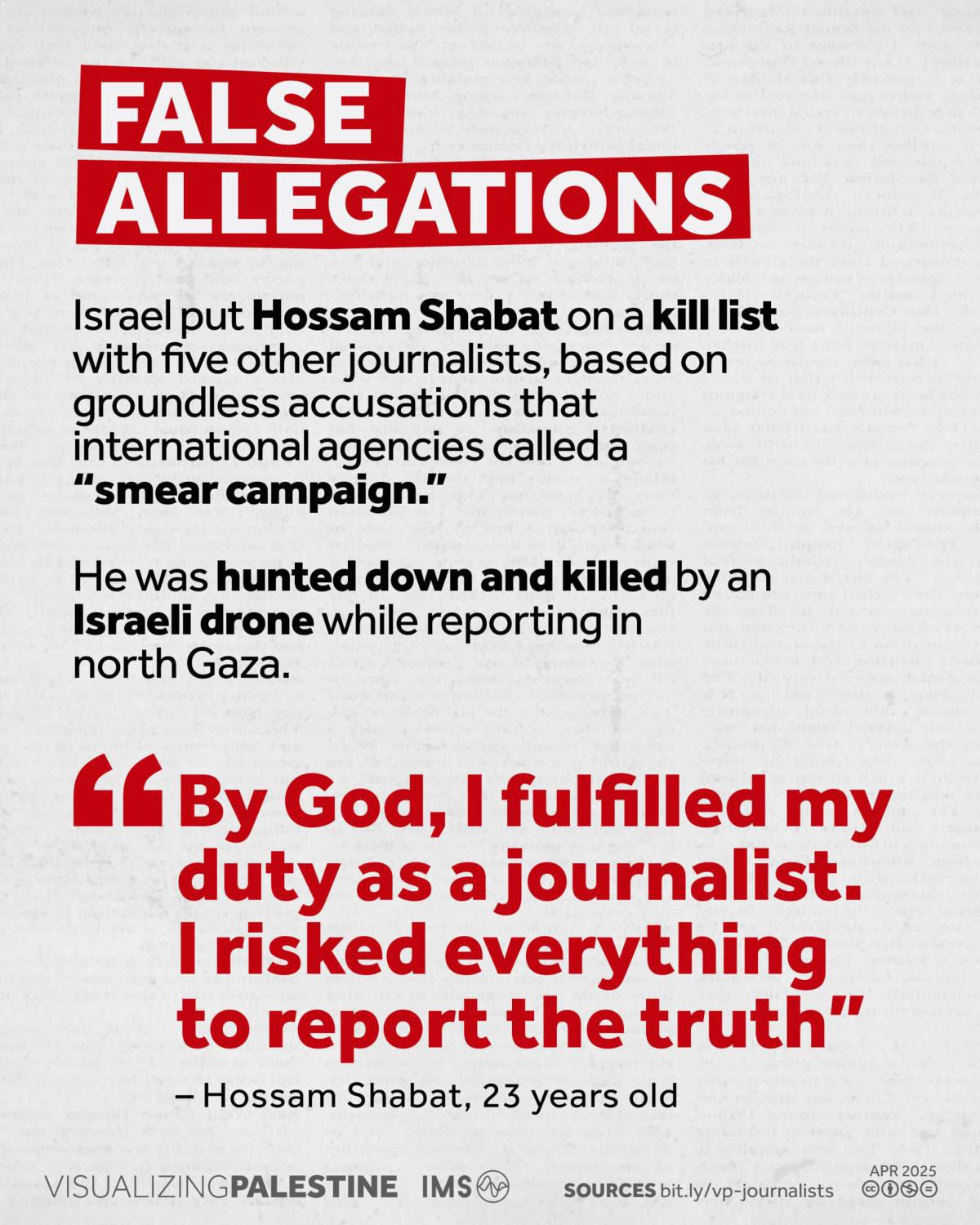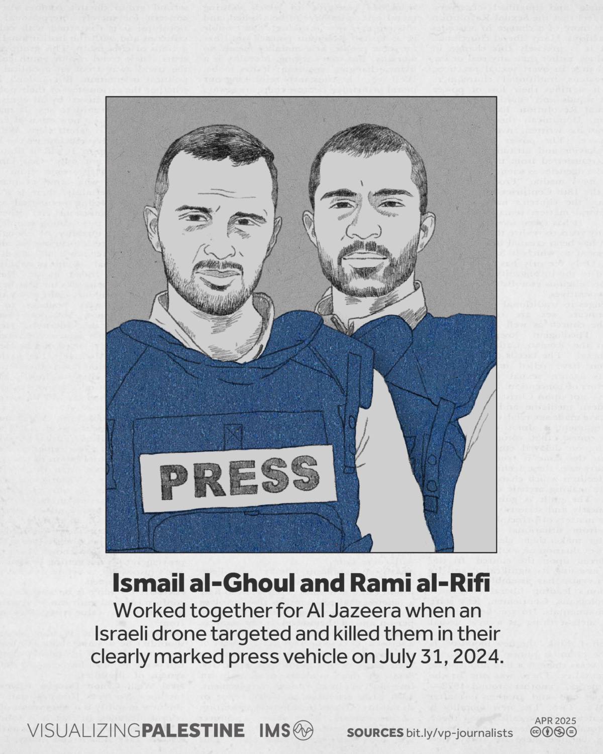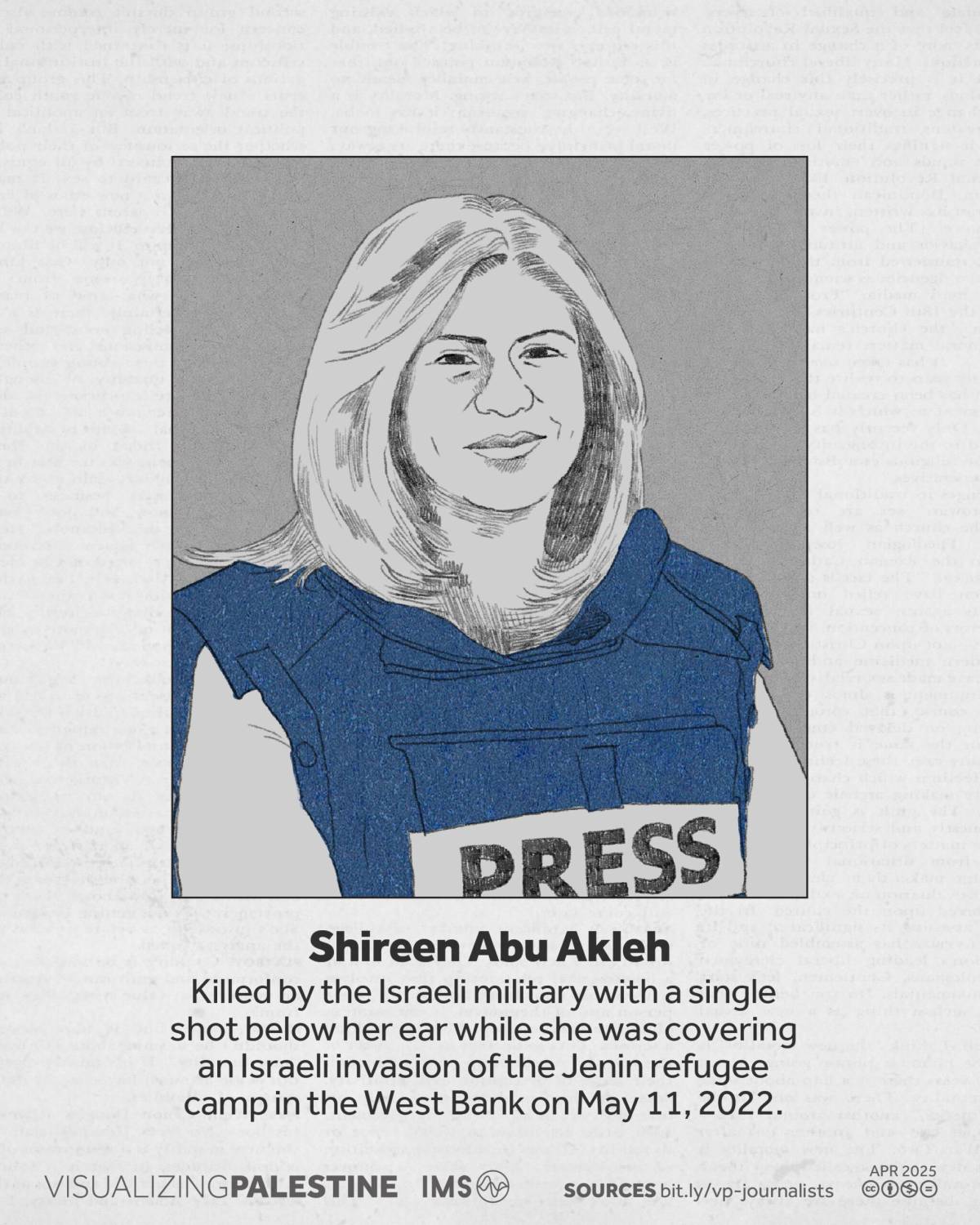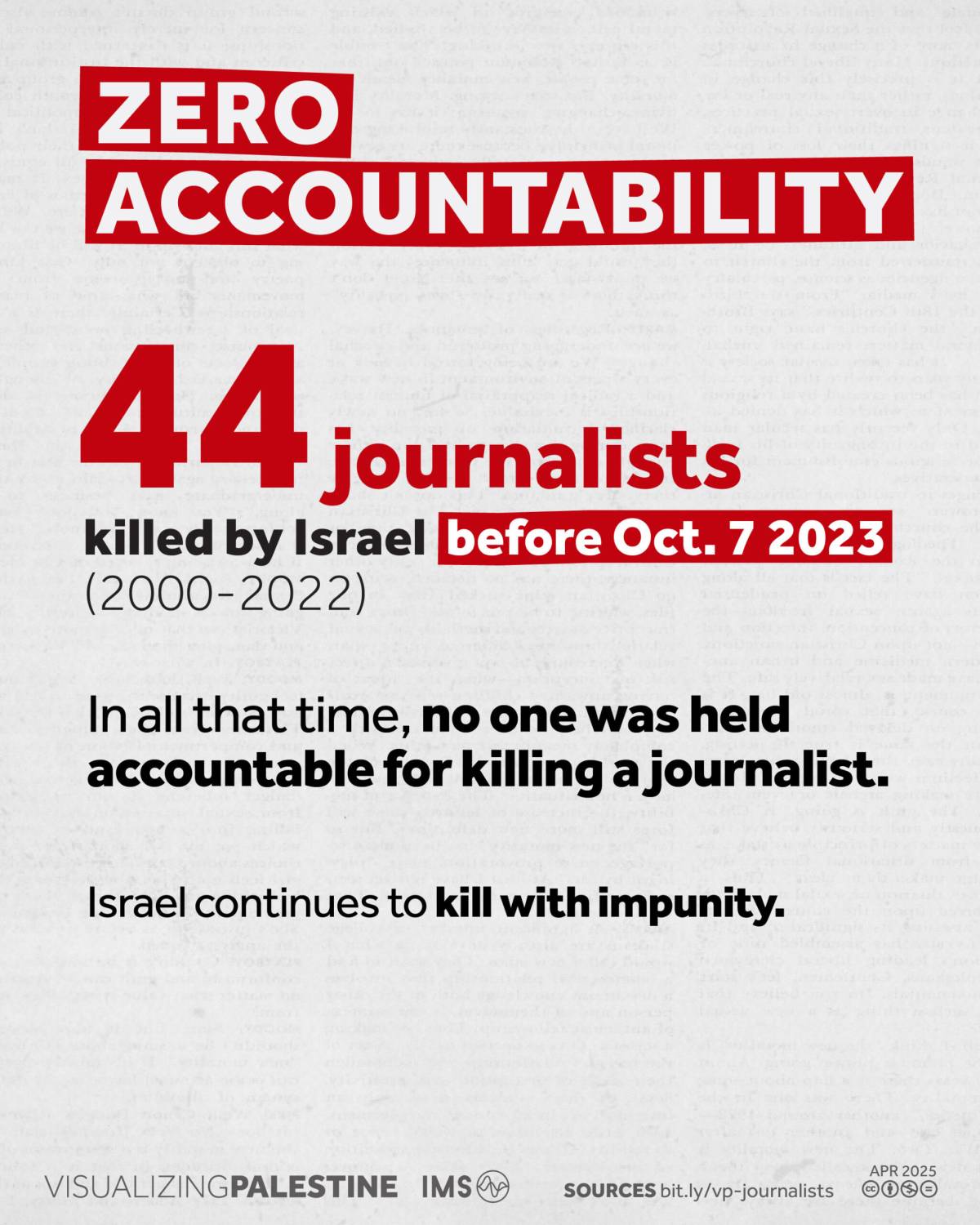 [April, 2025]. In this fourth update of the visual “Killing the Story”, we honor the hundreds of Palestinian journalists killed by Israel. These journalists documented atrocities as they unfolded — voices that the Israeli regime systematically continues to silence.