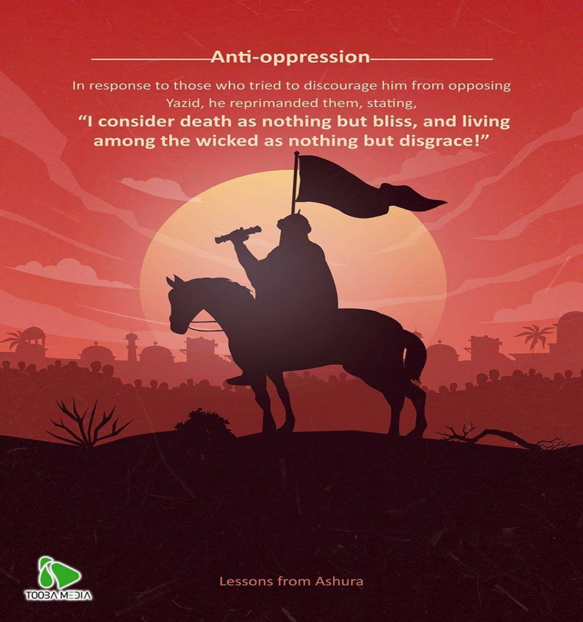 In response to those who tried to discourage him from opposing Yazid, he reprimanded them, stating, "l consider death as nothing but bliss, and living among the wicked as nothing but disgrace !"