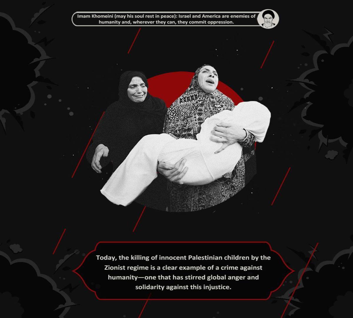 Today, the killing of innocent Palestinian children by the Zionist regime is a clear example of a crime against humanity__one that has stirred global anger and solidarity against this injustice.