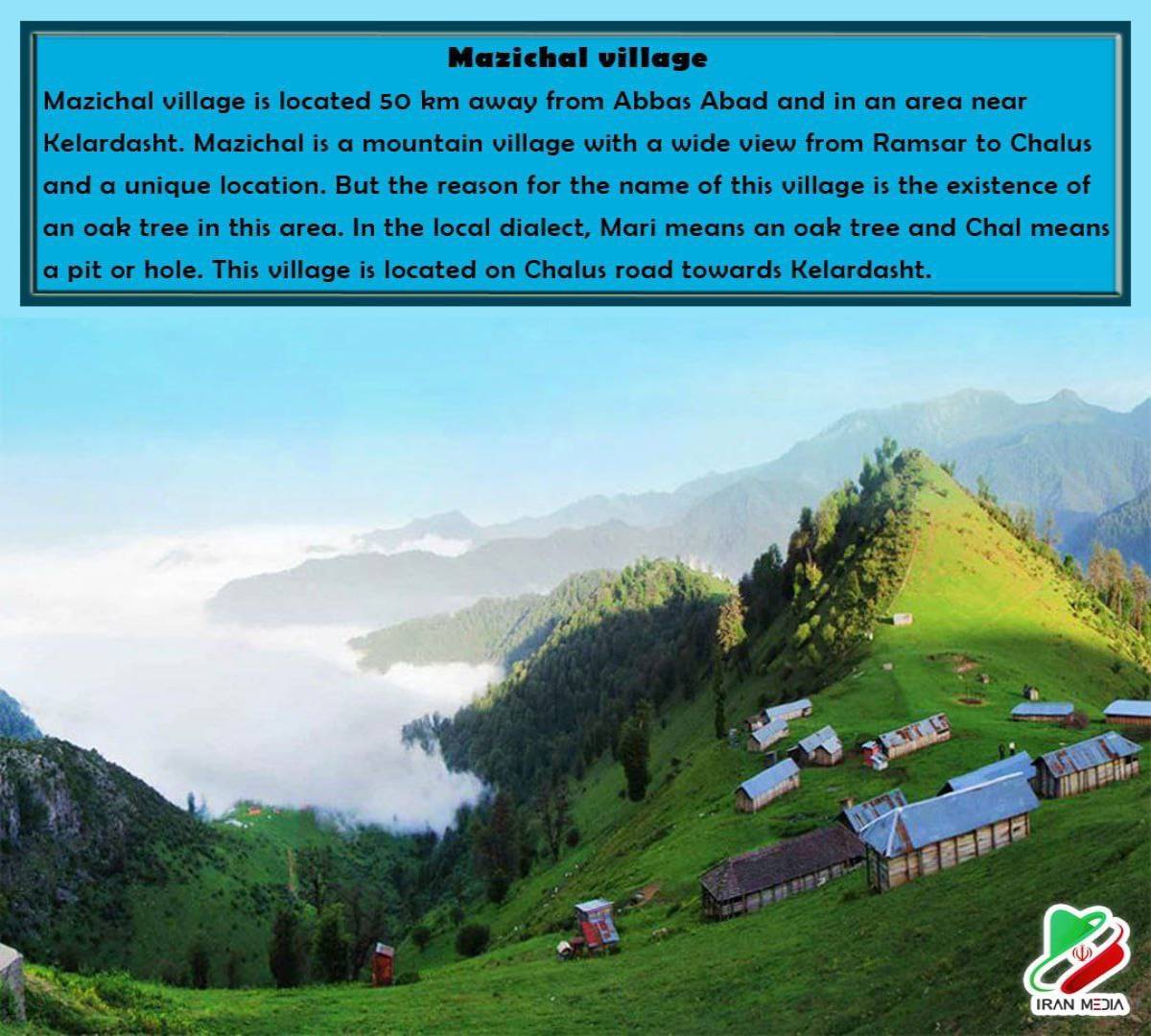 Mazichal village is located 50 km away from Abbas Abad and in an area near Kelardasht. Mazichal is a mountain village with a wide view from Ramsar to Chalus and a unique location. But the reason for the name of this village is the existence of an oak tree in this area. In the local dialect, Mari means an oak tree and Chal means a pit or hole. This village is located on Chalus road towards Kelardasht.