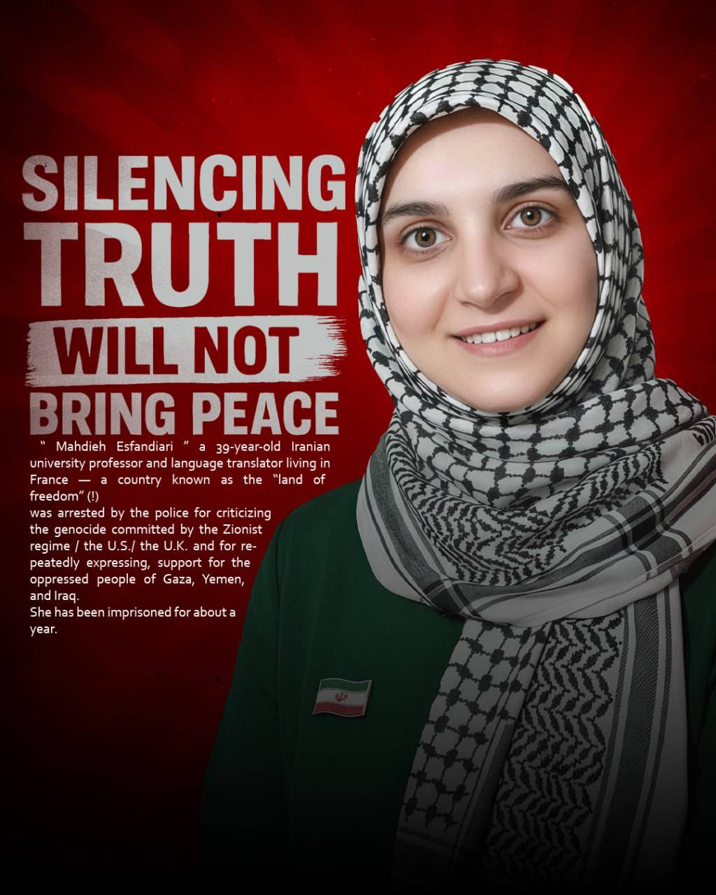 "Mahdieh Esfandiari " a 39-year-old Iranian university professor and language translator living in France a country known as the "land of freedom" (!)