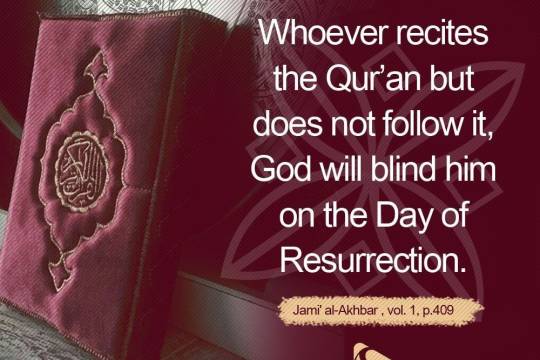 whoever recites the quran but does not follow it, god will blind him on the day of resurrection.