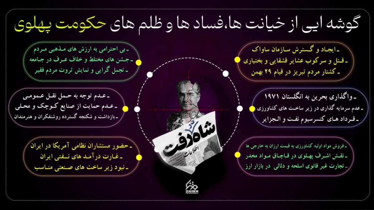 اینفوگرافیک : گوشهای از خیانتها، ظلمها و فسادهای حکومت پهلوی