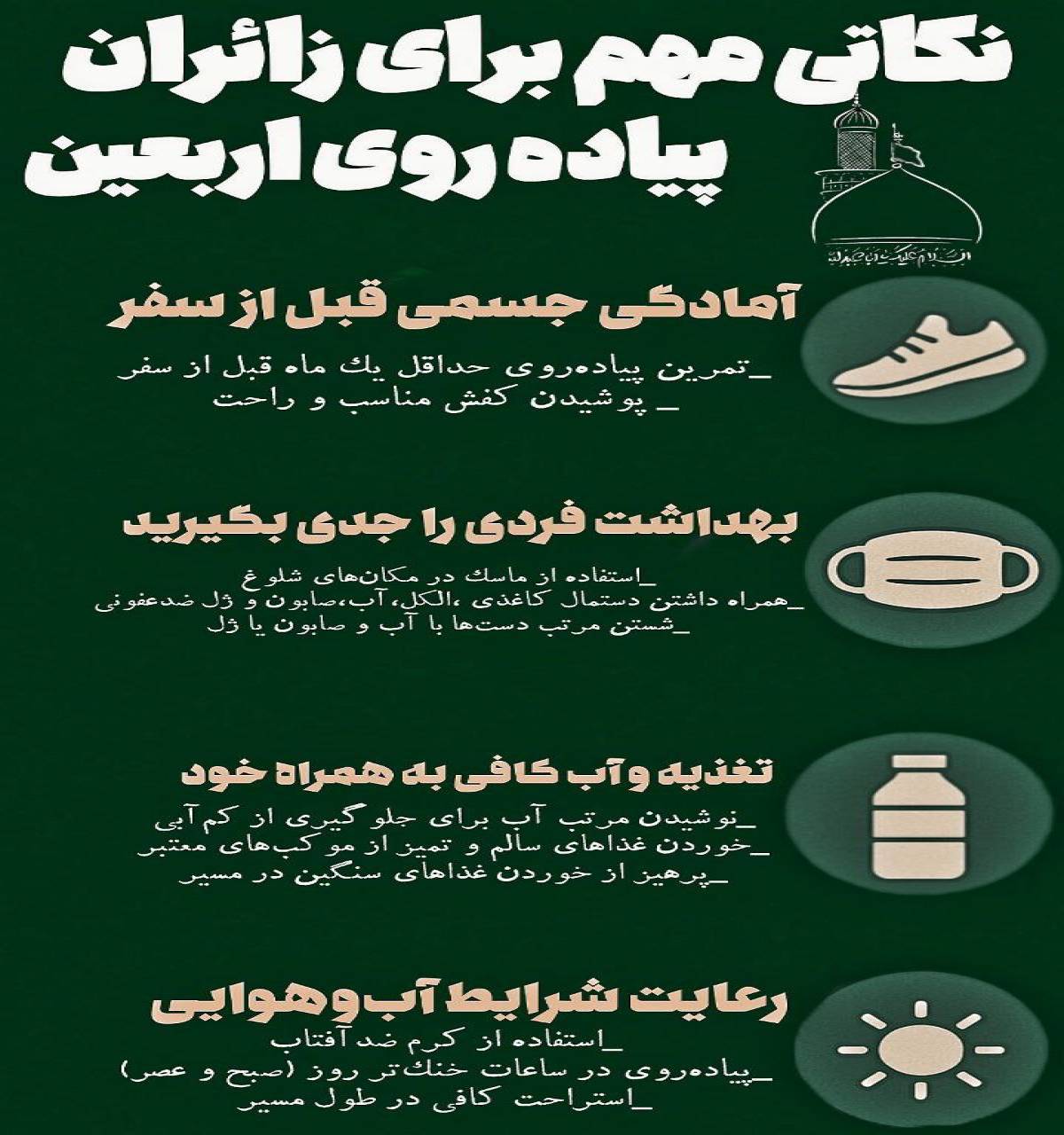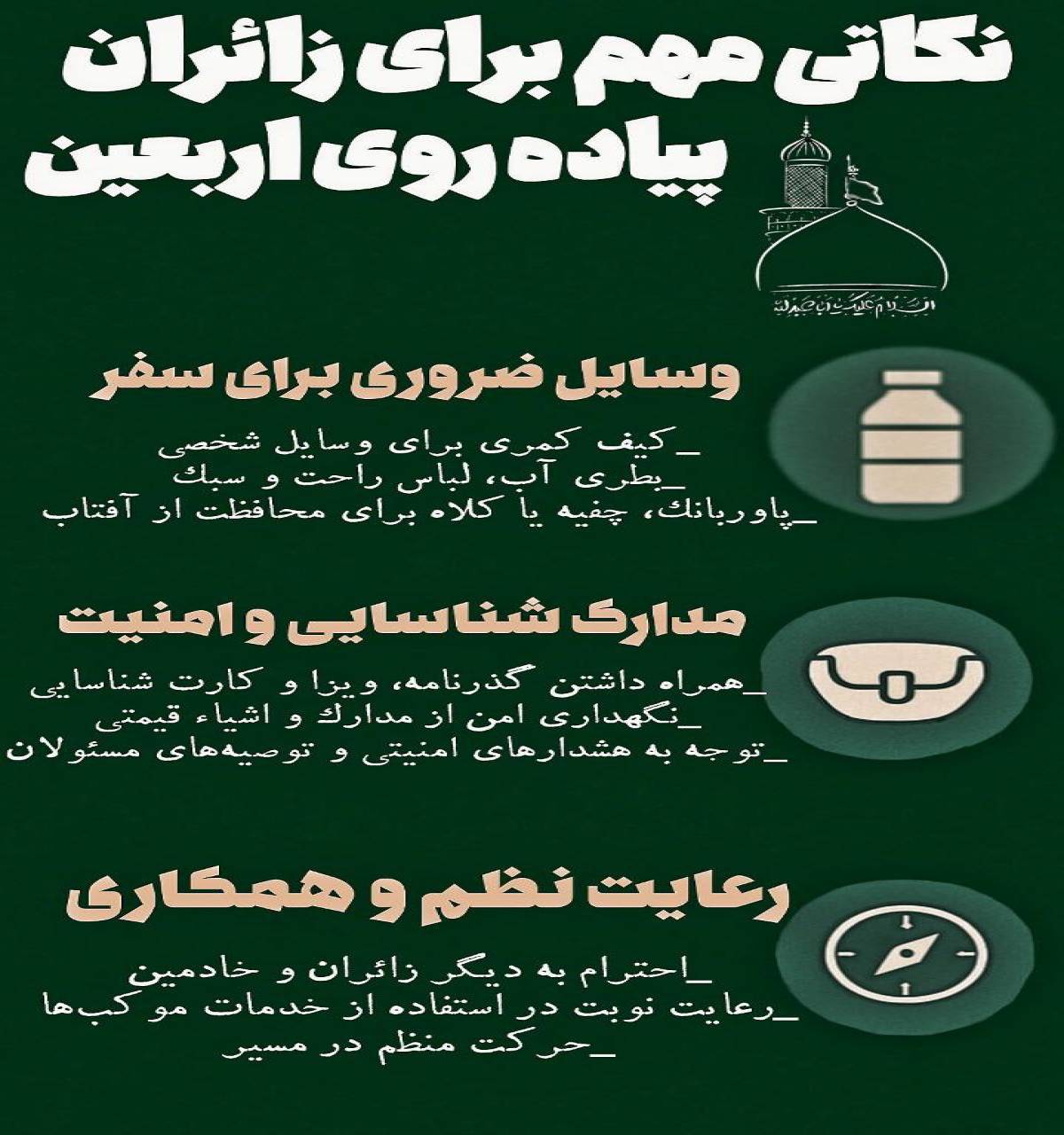 مجموعه اینفوگرافی : نکات مهم برای زائران پیاده روی اربعین