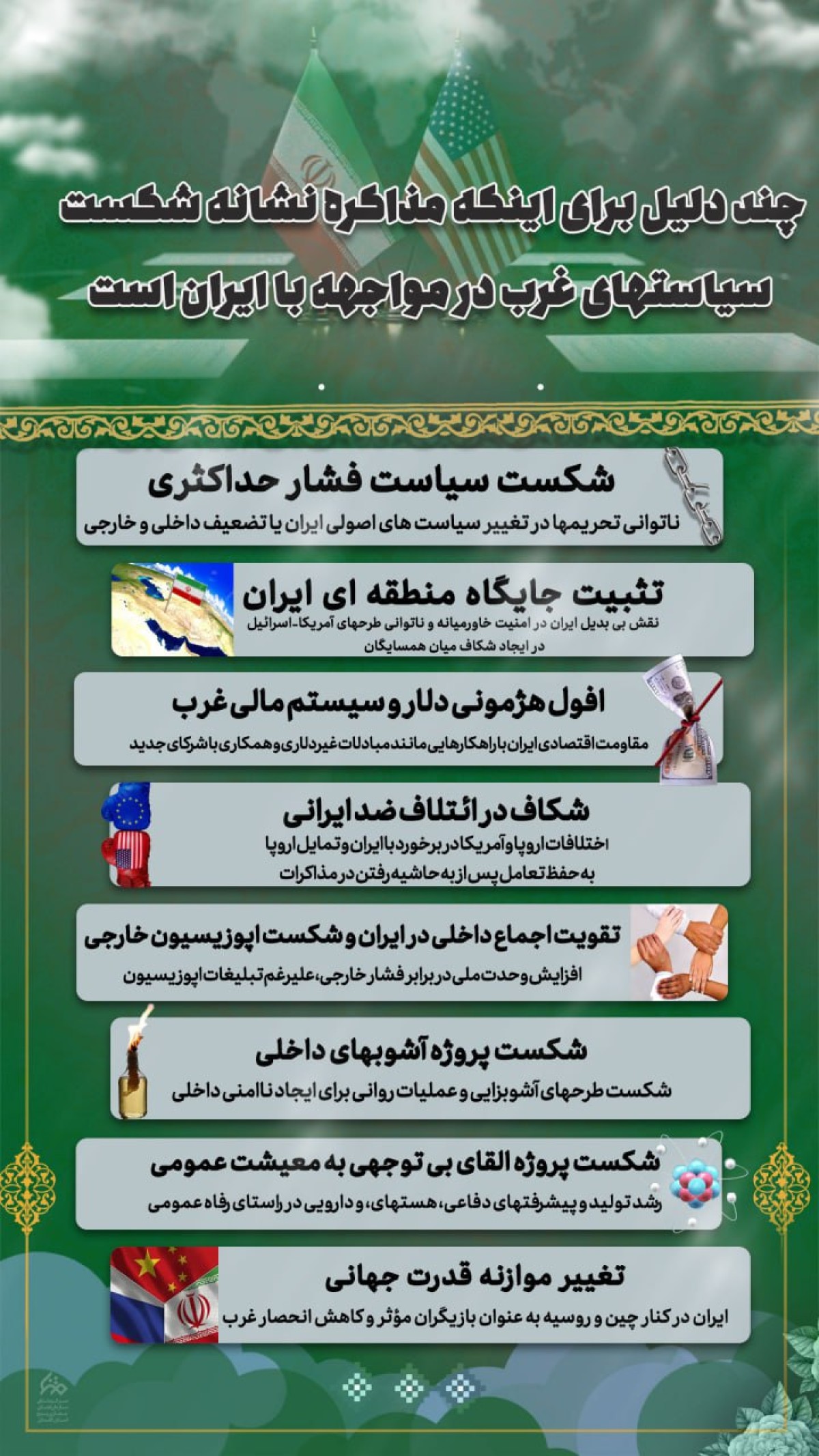 مجموعه اینفوگرافی : چند دلیل برای اینکه مذاکره نشانه شکست سیاستهای غرب