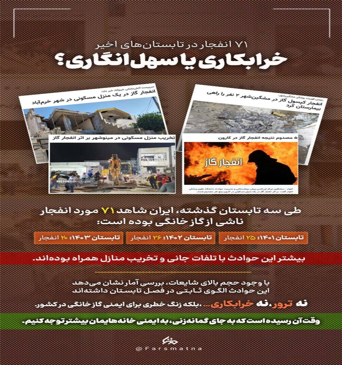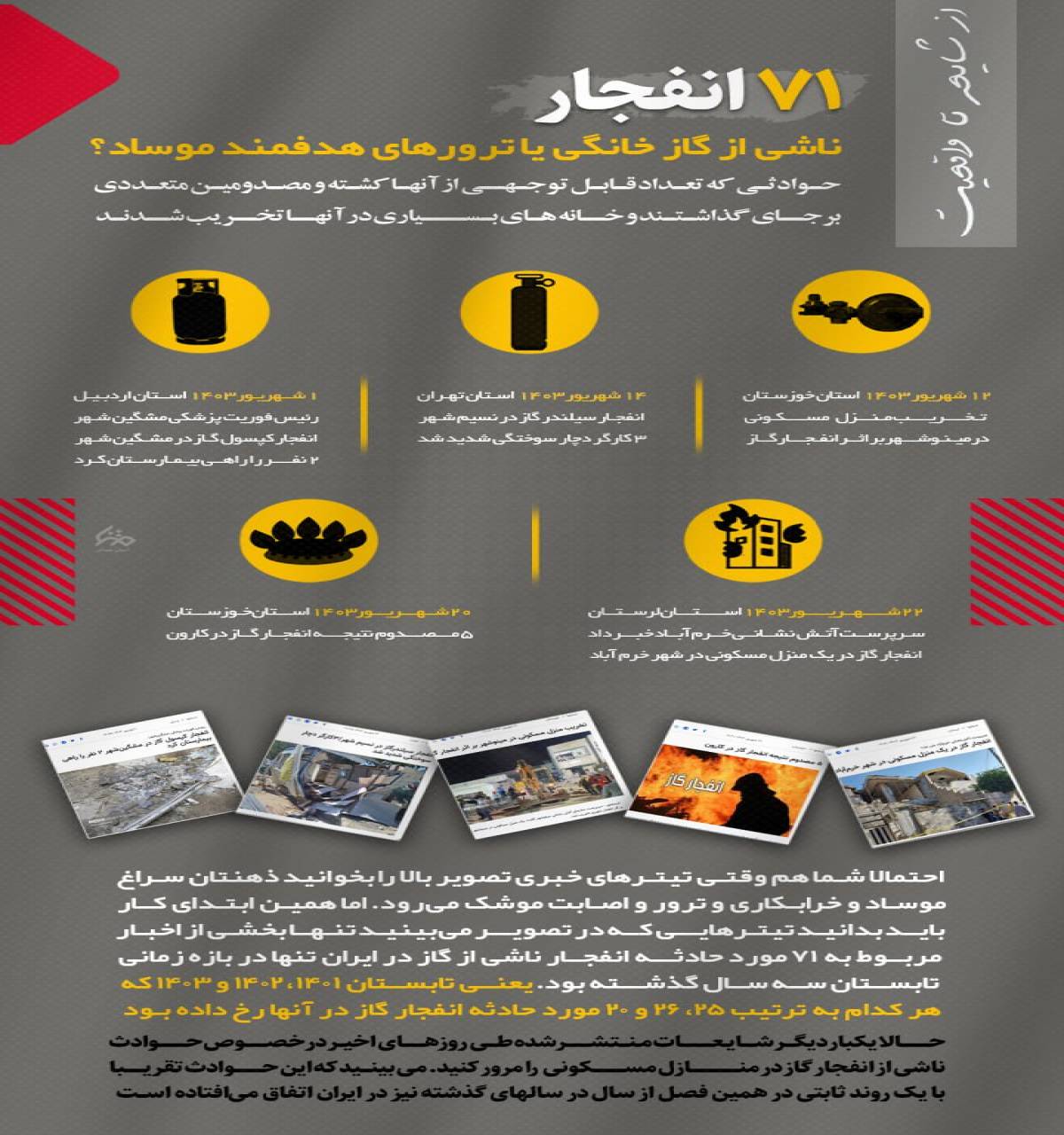 مجموعه اینفوگرافی : ۷۱ انفجار ناشی از گاز خانگی یا ترورهای هدفمند ؟!