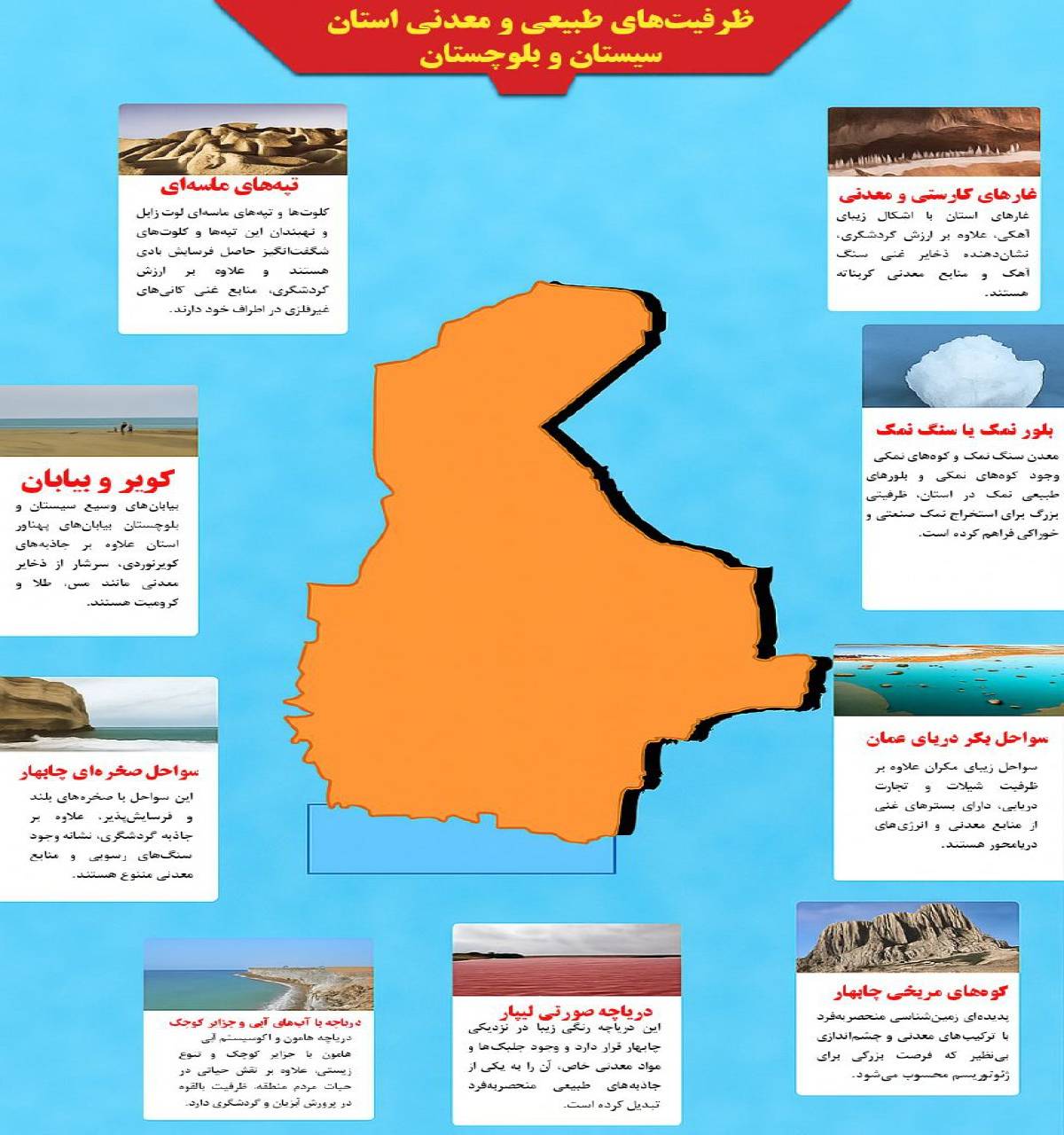 مجموعه اینفو گرافی : ظرفیت های طبیعی و معدنی استان سیستان و بلوچستان