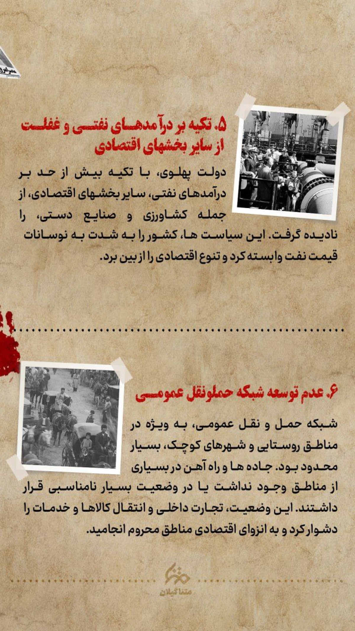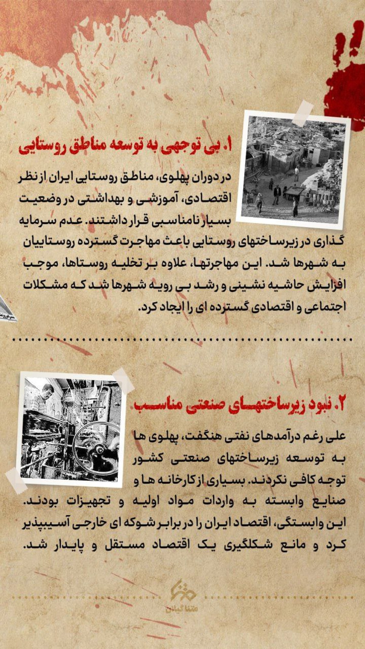 مجموعه اینفو گرافی : عقب ماندگی ایران از پیشرفت و محرومیتهای مردم در دوره پهلوی