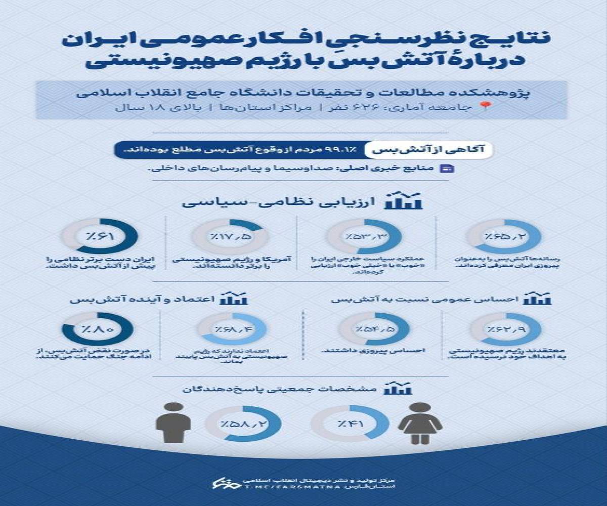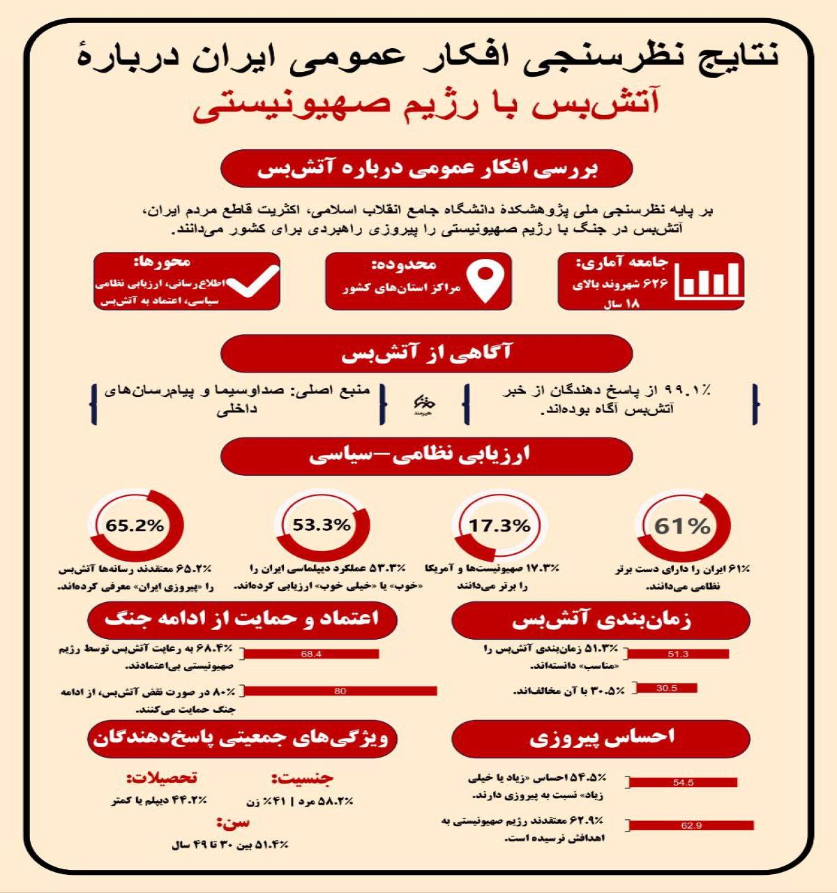 مجموعه اینفگرافی : نتایج نظرسنجی افکار عمومی ایران درباره ی آتش بس با رژیم صهیونیستی