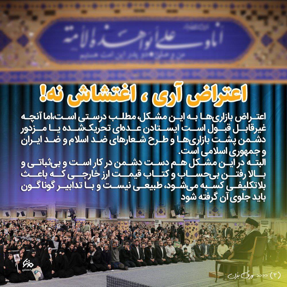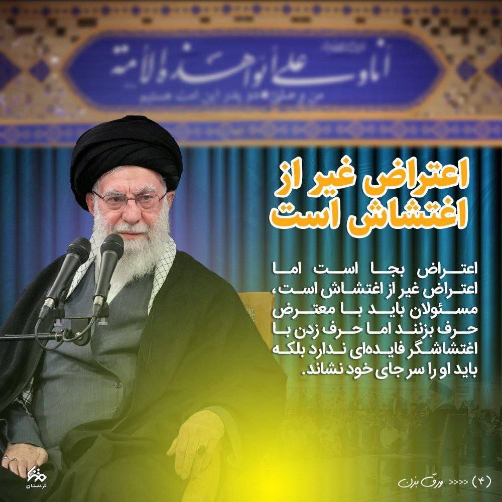 اعتراض بجا است اما اعتراض غیر از اغتشاش است ، مسئولان باید با معترض حرف بزنند اما حرف زدن با اغتشاشگر فایدهای ندارد بلکه باید او را سر جای خود نشاند.