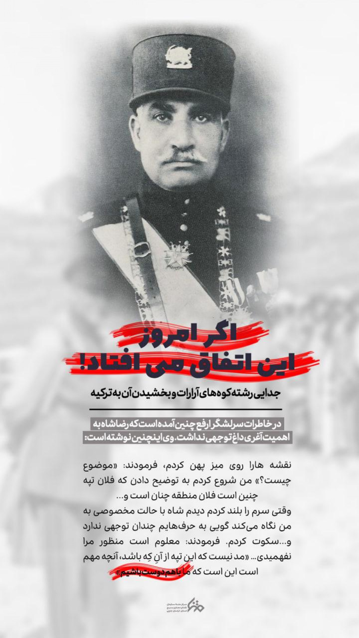 چنین است فلان منطقه چنان است و... وقتی سرم را بلند کردم دیدم شاه با حالت مخصوصی به من نگاه می کند گویی به حرف هایم چندان توجهی ندارد و... سکوت کردم. فرمودند: معلوم است منظور مرا نفهمیدی... «مد نیست که این تپه از آن که باشد، آنچه مهم