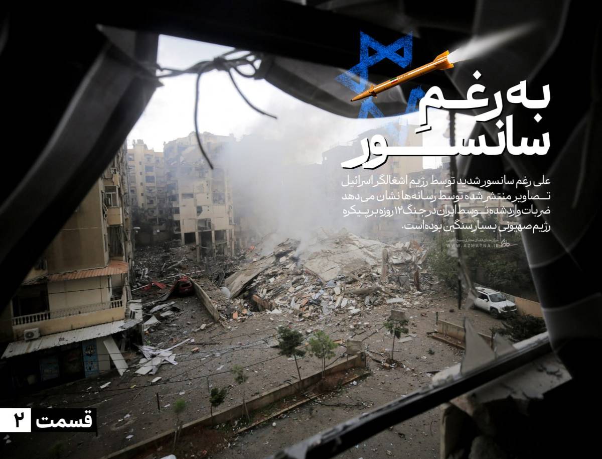 علی‌رغمِ سانسور شدید توسط رژیم اشغالگر اسرائیل، تصاویر منتشر شده توسط رسانه‌ها نشان می‌دهد ضربات واردشده توسط ایران در جنگ ۱۲ روزه بر پیکره رژیم صهیونی بسیار سنگین بوده است.
