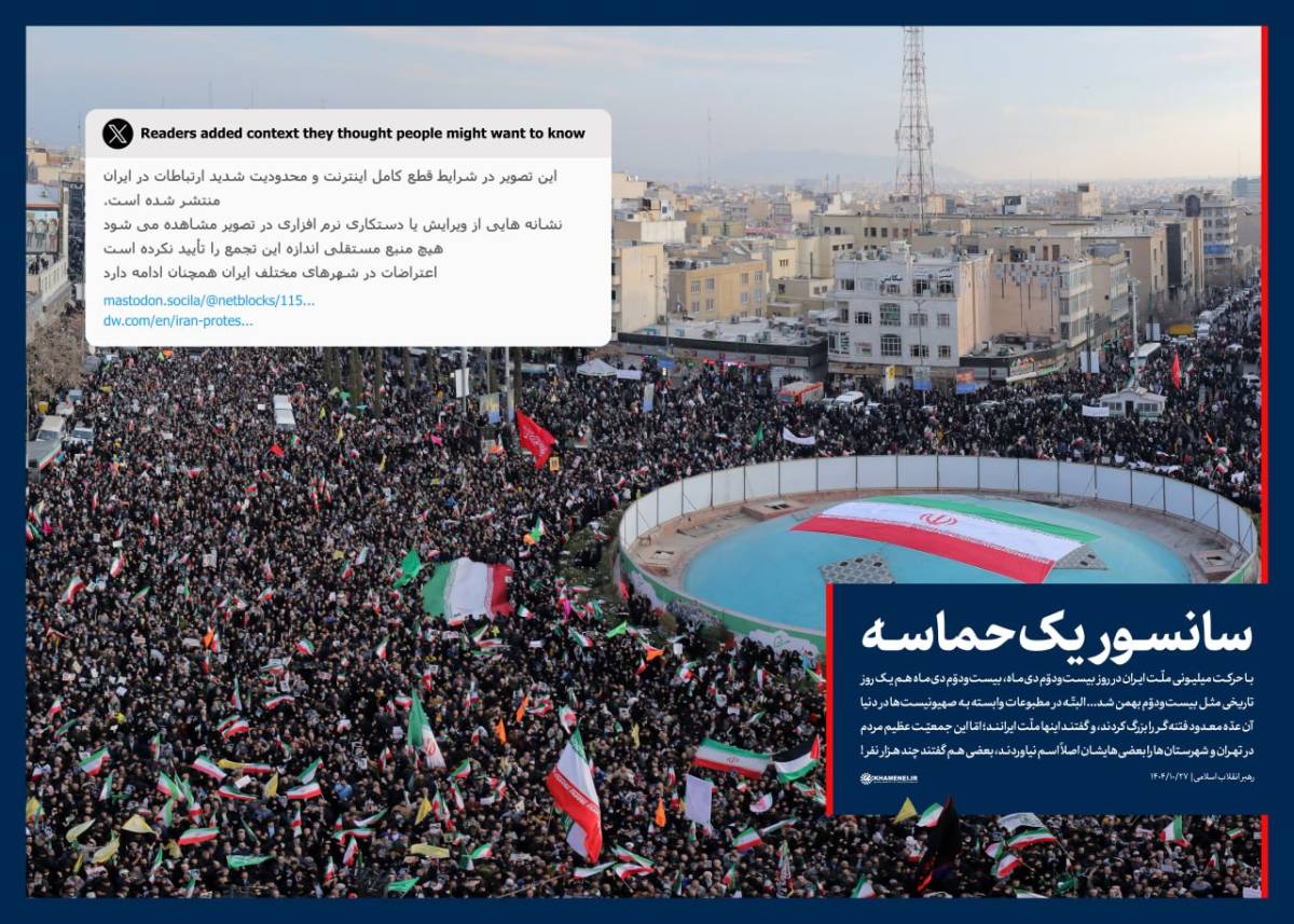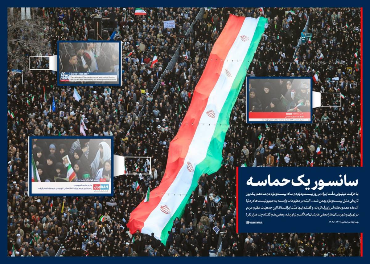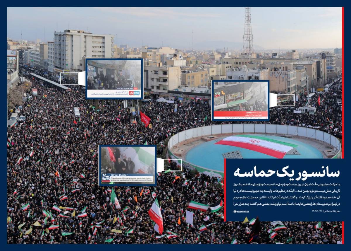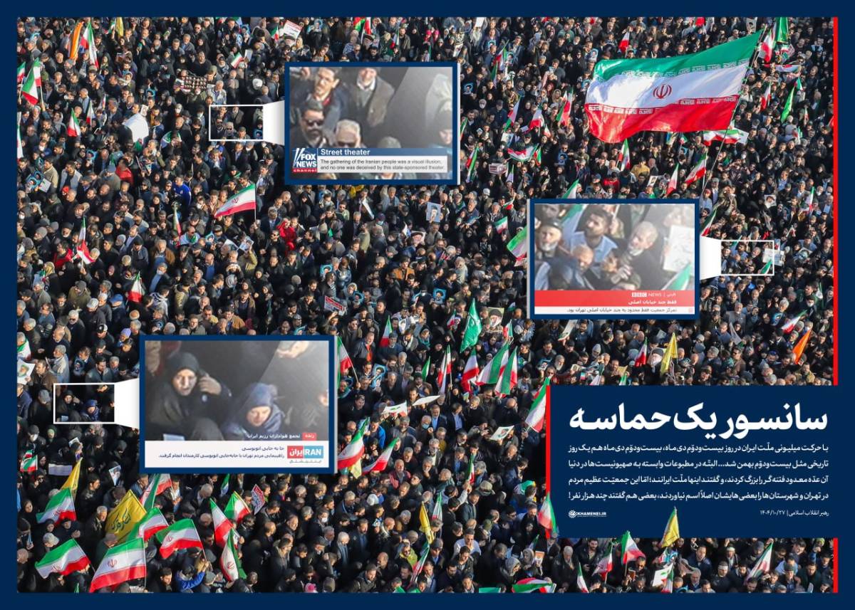 حضرت آیتالله خامنهای: با حرکت میلیونی ملّت ایران در روز بیست و دوّم دی ماه، بیست و دوّم دی ماه هم یک روز تاریخی مثل بیست و دوّم بهمن شد... البته در مطبوعات وابسته به صهیونیستها در دنیا آن عده معدود فتنهگر را بزرگ کردند، و گفتند اینها ملت ایرانند؛ امّا این جمعیّت عظیم مردم در تهران و شهرستانها را بعضیهایشان اصلا اسم نیاوردند، بعضی هم گفتند چند هزار نفر! ۱۴۰۴/۱۰/۲۷