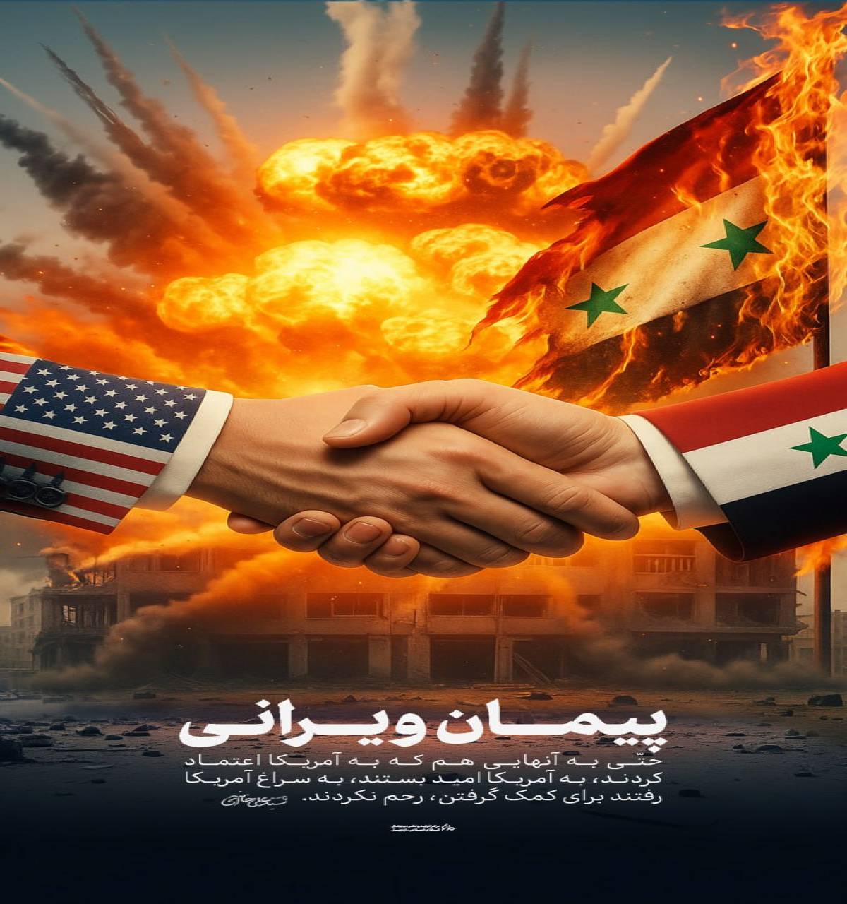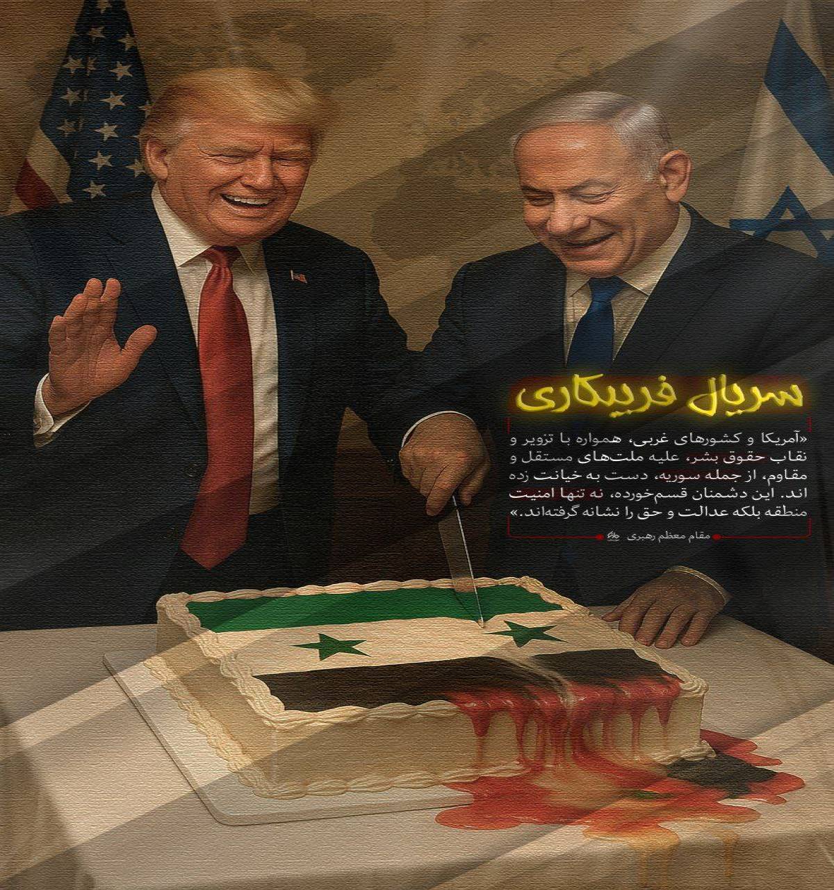 آمریکا و کشورهای غربی همواره با تزویر و نقاب حقوق بشر علیه ملتهای مستقل و مقاوم از جمله سوریه دست به خیانت زده اند این دشمنان قسم خورده نه تنها امنیت منطقه بلکه عدالت و حق را نشانه گرفته اند.» مقام معظم رهبری
