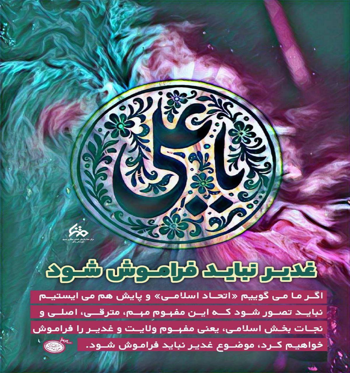 اگر ما می گوییم «اتحاد اسلامی و پایش هم می ایستیم نباید تصور شود که این مفهوم ،مهم مترقی اصلی و نجات بخش ،اسلامی یعنی مفهوم ولایت و غدیر را فراموش خواهیم کرد موضوع غدیر نباید فراموش شود.
