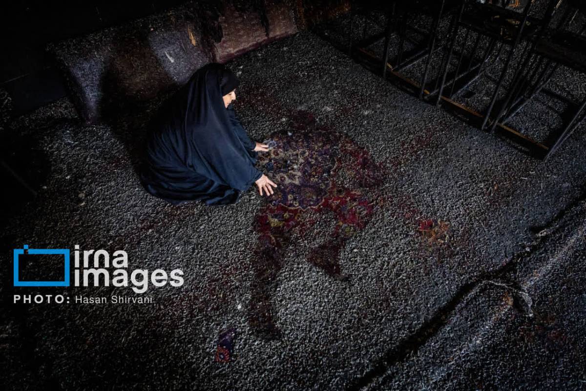 رد پیکر مطهر شهیدی که در آتش اغتشاشگران سوخت.