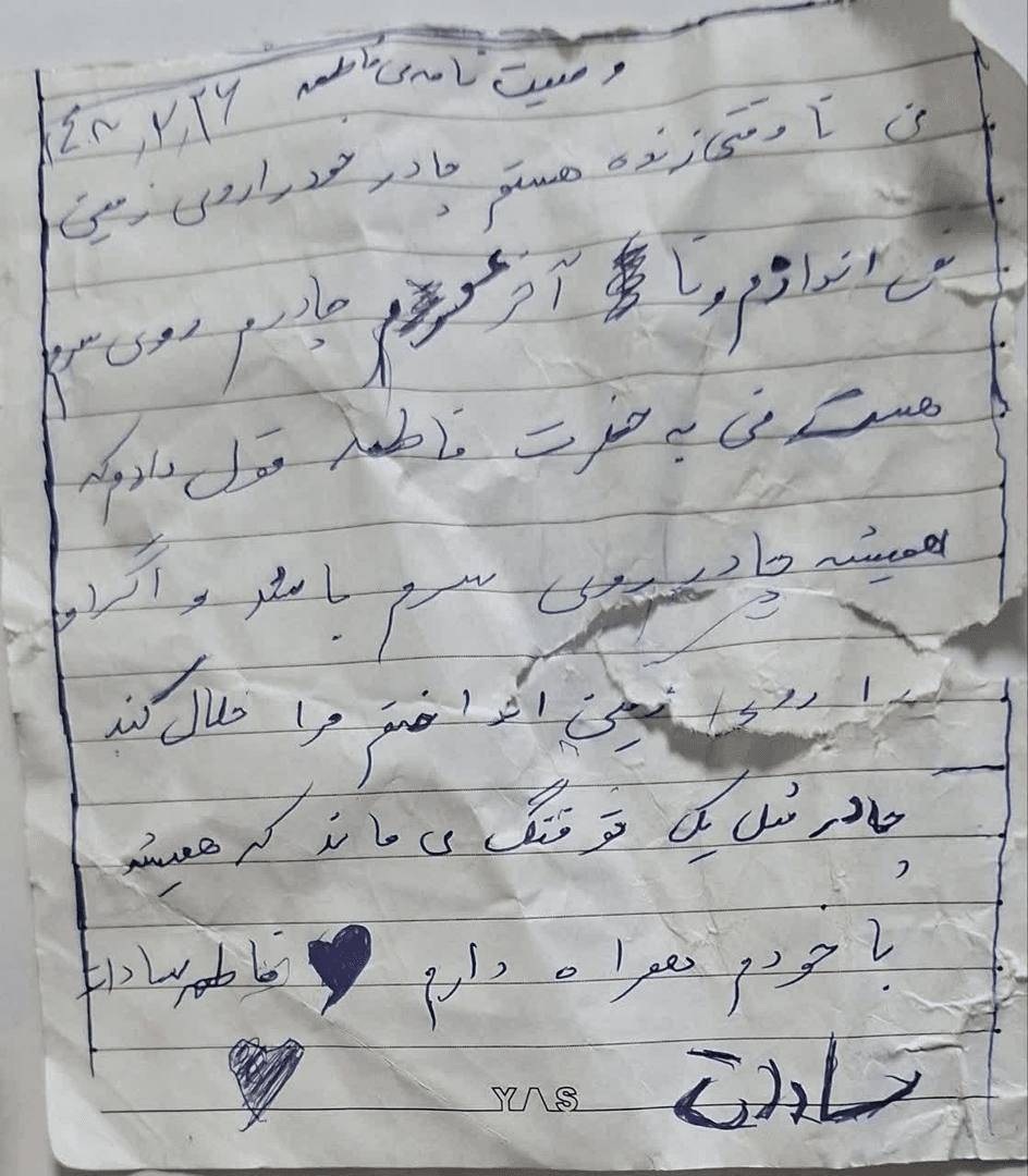 این وصیت نامه برای سال ۱۴۰۳ هست یعنی فاطمه سادات فقط ۹ سالش بوده