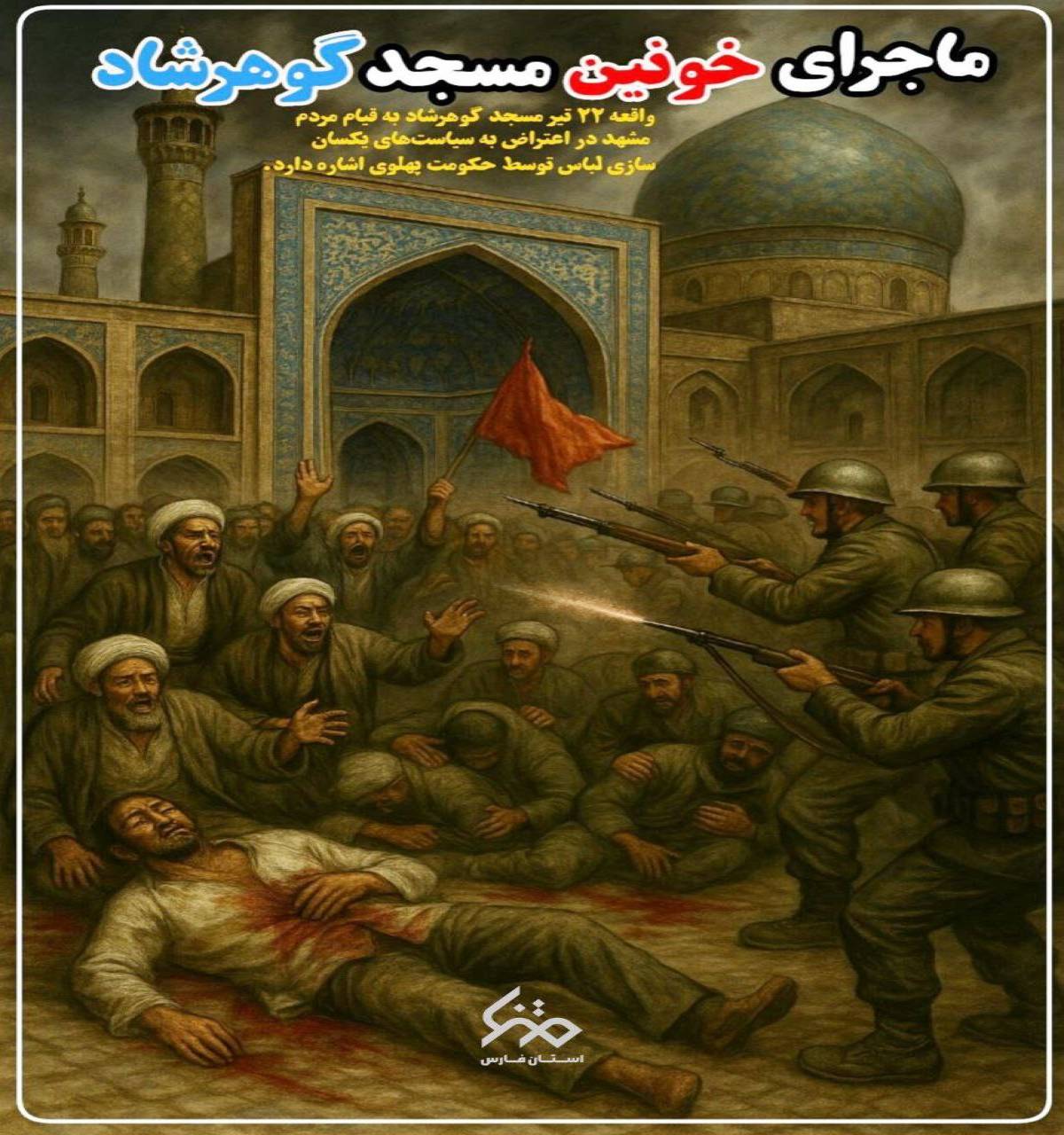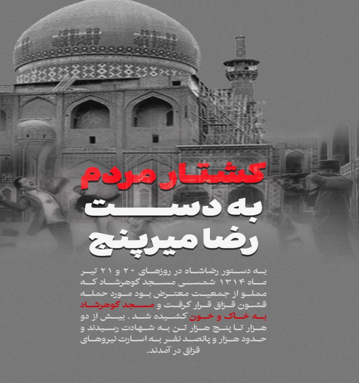 به دستور رضاشاه در روزهای ۲۰ و ۲۱ تیر ماه ۱۳۱۴ شمسی مسجد گوهرشاد که مملو از جمعیت معترض بود مورد حمله قشون قزاق قرار گرفت و مسجد گوهرشاد به خاک و خون کشیده شد . بیش از دو هزار تا پنج هزار تن به شهادت رسیدند و حدود هزار و پانصد نفر به اسارت نیروهای قزاق در آمدند.