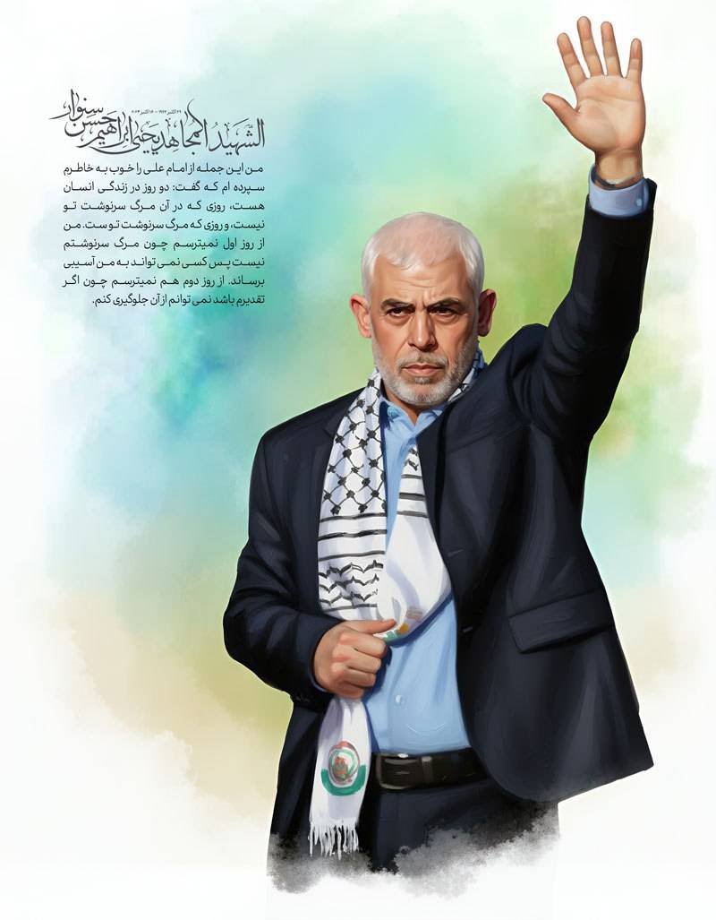 مجاهد قهرمان، فرمانده یحیی السّنوار... با عزم پولادین در برابر دشمن ظالم و متجاوز ایستاد؛ با تدبیر و شجاعت به او سیلی زد؛ ضربهی جبرانناپذیر هفتم اکتبر را در تاریخ این منطقه به یادگار گذاشت؛ و آنگاه با عزّت و سربلندی به معراج شهیدان پرواز کرد.